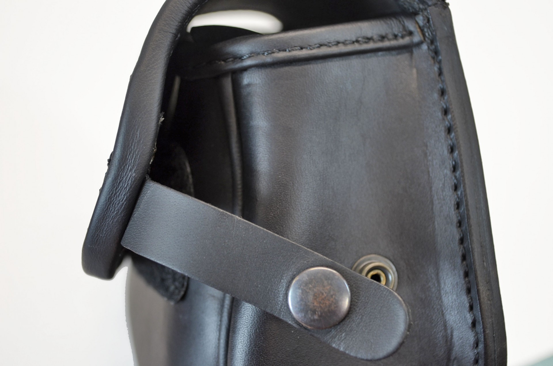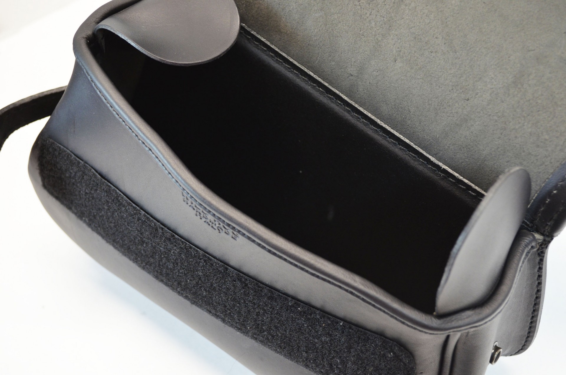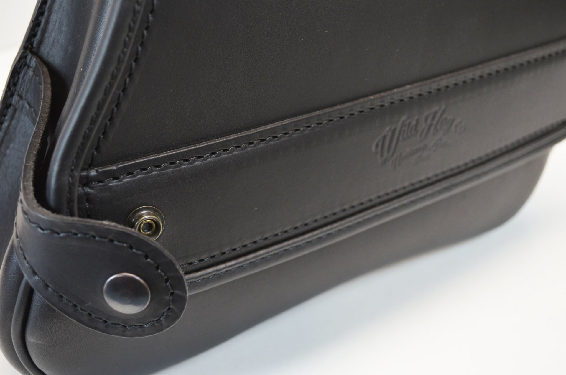 Compact bag in 4mm full-grain leather, specially designed for the left side of the HD Sportster 1250 swingarm.