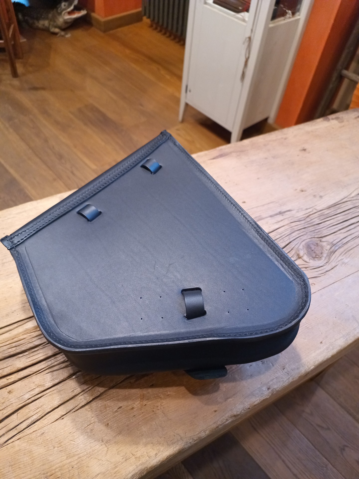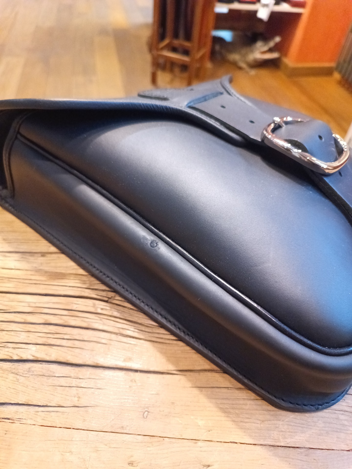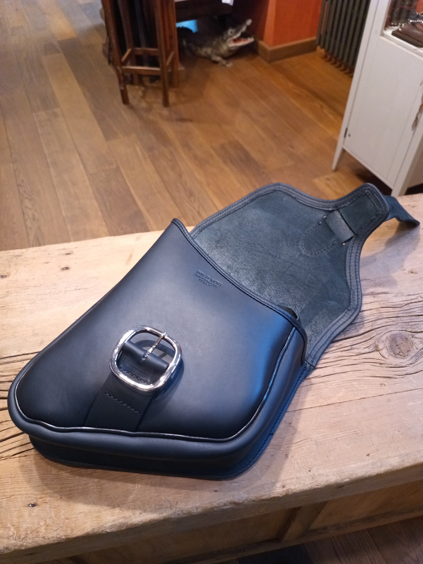 Borsa Stret bag per modelli Softail pre2018. Si monta alla moto tramite cinghie di cuoio direttamente al forcellone.