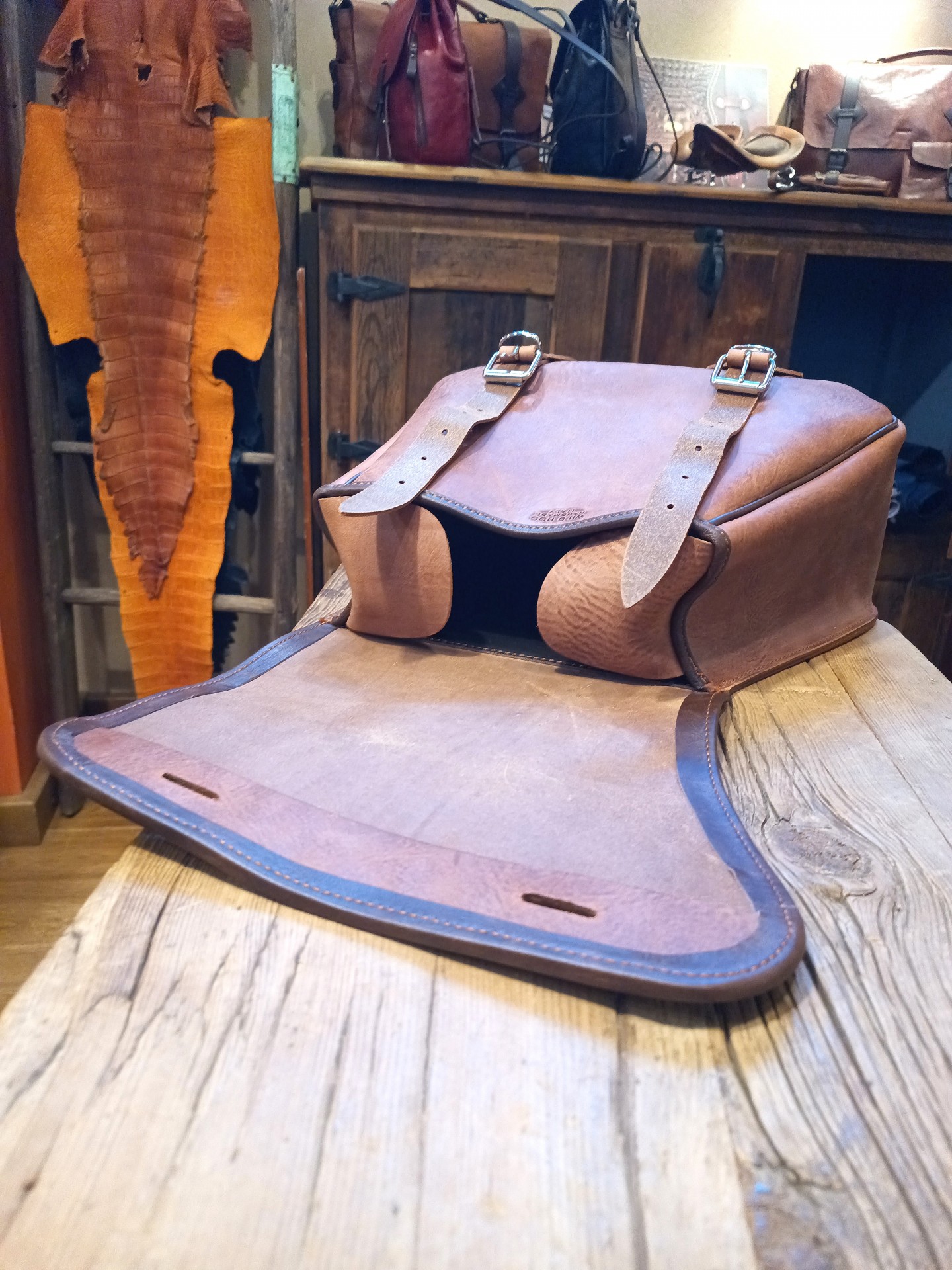 Nella sede di Via Aleardi a Reggio Emilia, dove il legno ed il cuoio si fondono in una armoniosa simbiosi, creano un ambiente caldo ed accogliente nel quale è ricavato il laboratorio dove i vecchi attrezzi e i nuovi macchinari collaborano ogni giorno con le nostre mani formando un cocktail ingegnoso atto alla costruzione di oggetti indelebili nel tempo.