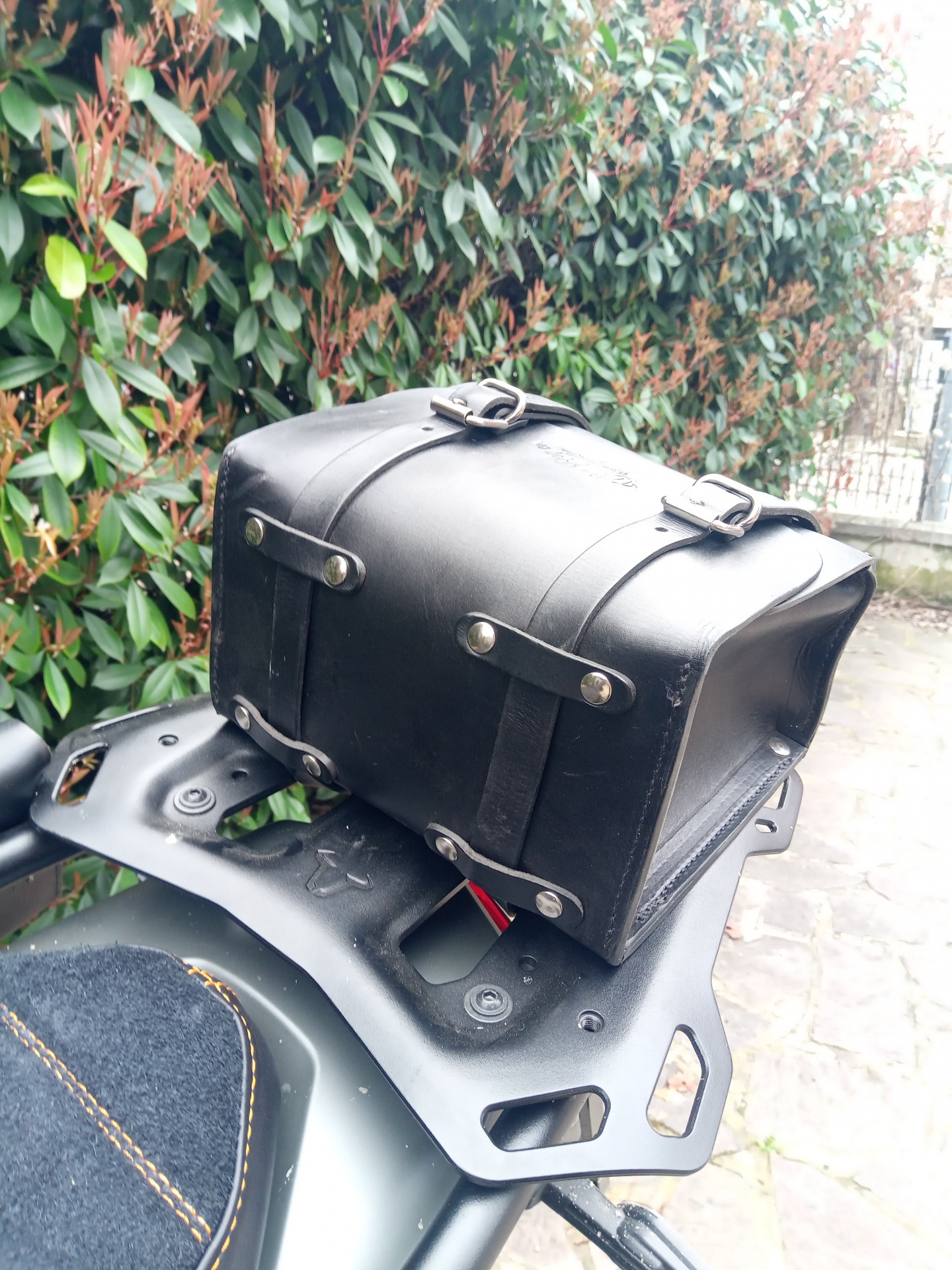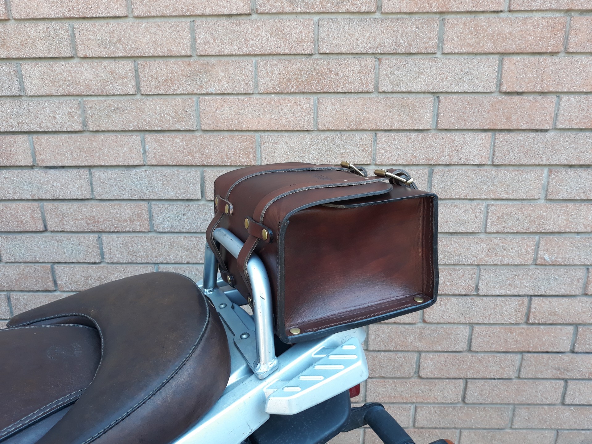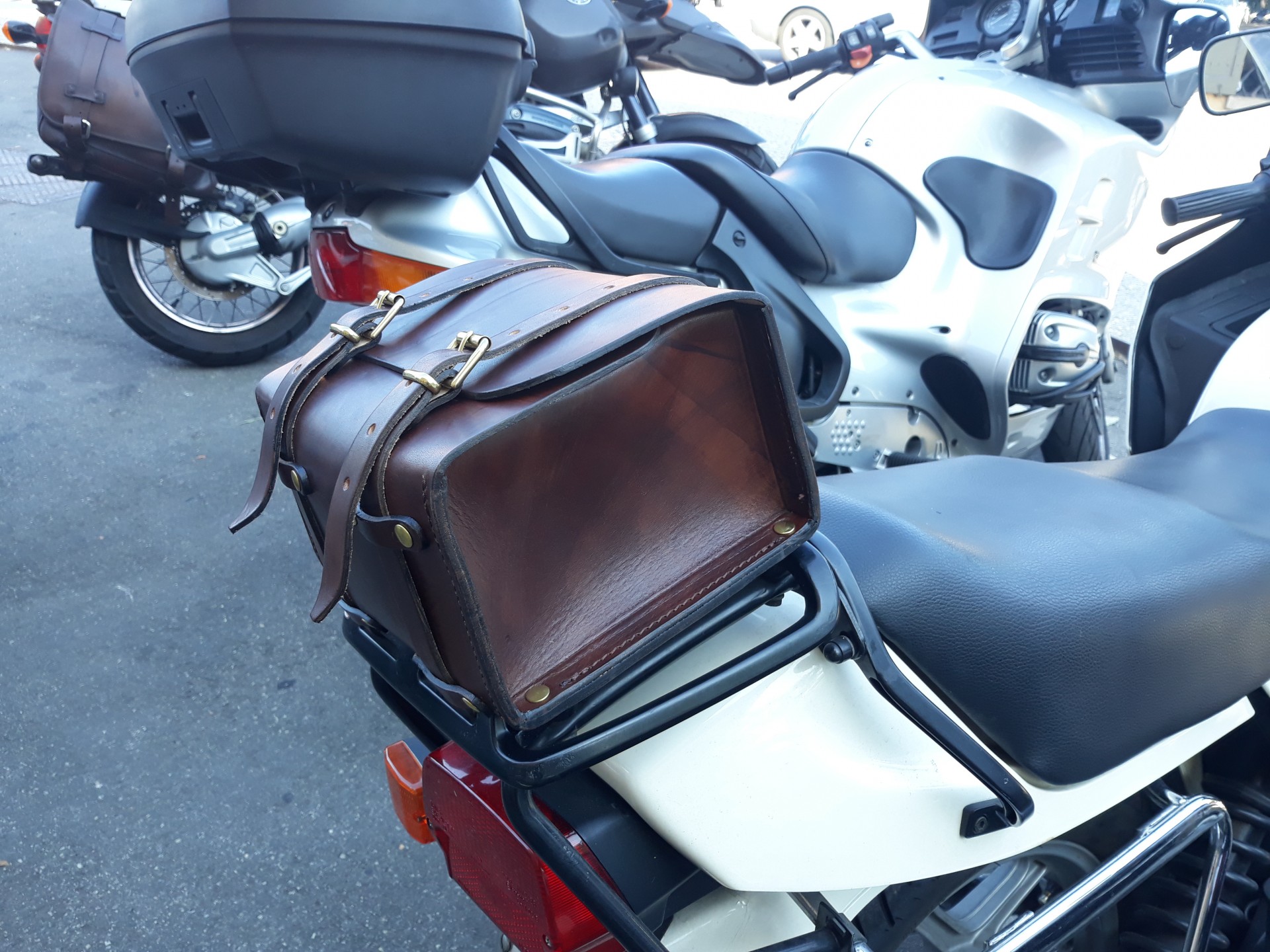 Borsa posteriore adatta a tutti i portapacchi suia per moto d'epoca che moderne, fedelmente ispirato ai modelli prodotti da Brema negli anni d'oro della Parigi Dakar